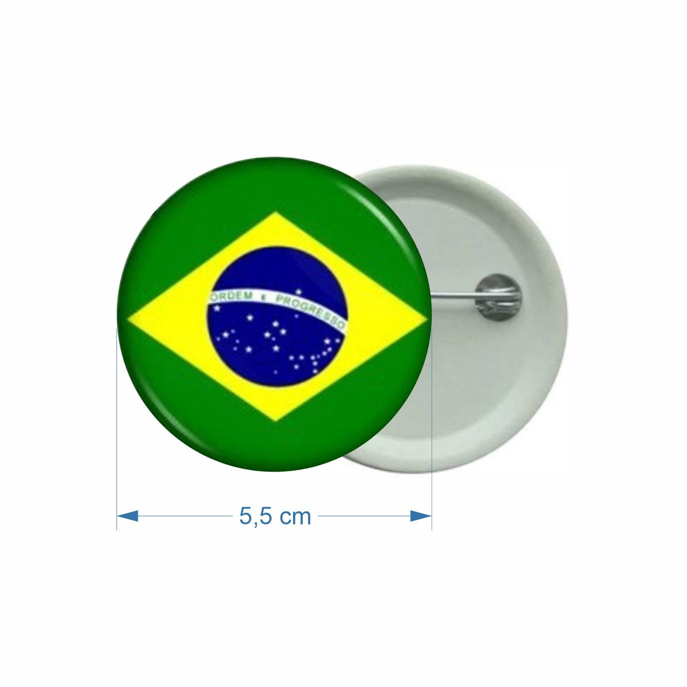 Este item acompanha a tampa de metal, base de plástico com alfinete com ponta protegida, impressão à laser sem limite de cores, coberto com película protetora
