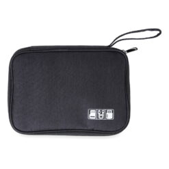 Estojo para kit tecnológico a prova d?água de poliéster possui 5 compartimentos com elástico e uma pequena tela de proteção, 3 elásticos centralizados, um bolso de tela com zíper e uma alça de mão. OBS.: ACESSÓRIOS NÃO INCLUSOS, IMAGENS MERAMENTE ILUSTRATIVAS.
